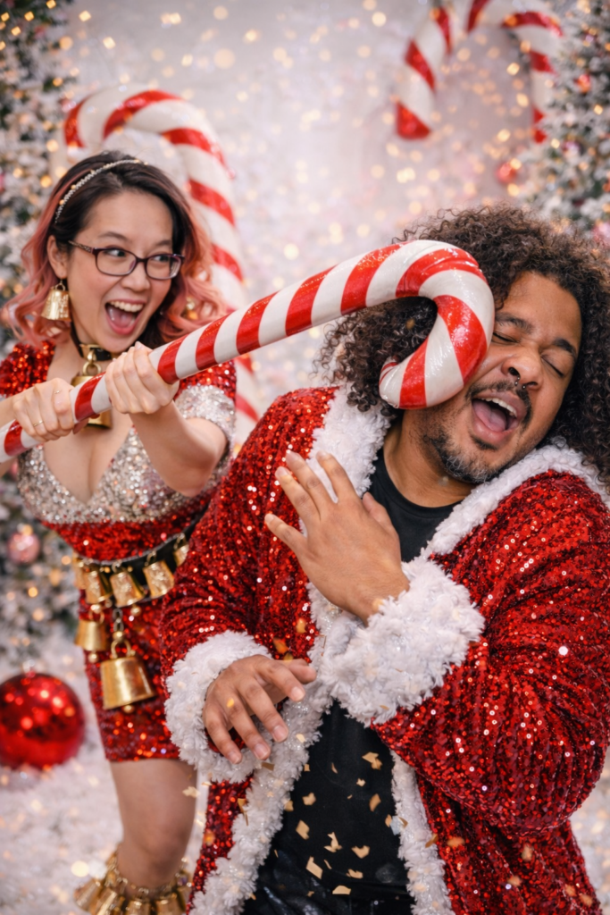 My friend Moon was playing with the ChatGPT Christmas card prompts after I told him to do one. Of course he’s so unhinged he asked Chat to add cow bells to his prompt. Yes, cow. bells. Then he added mine to the prompt and this is what it came out with.